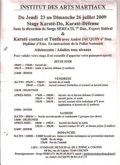 Pour ceux qui n'ont rien de prévu ce week-end, un stage avec Patrice Belrhiti, 8 ème Dan Wadoryu à la Ravoire et un stage de Kyokushinkai à Chambéry le haut avec Jacques Legree, 6 ème Dan .